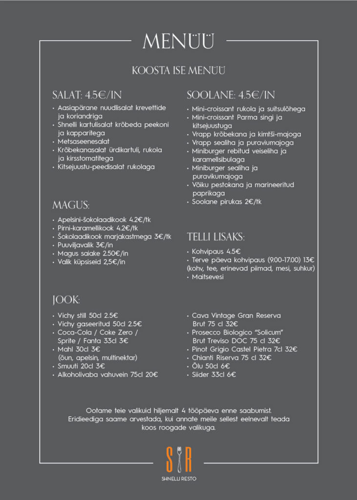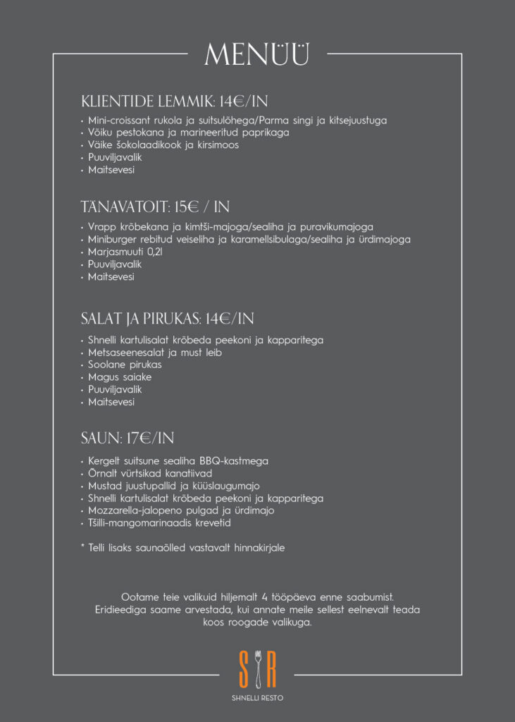 KOHVIPAUSIDE JA SAUNAMENÜÜ